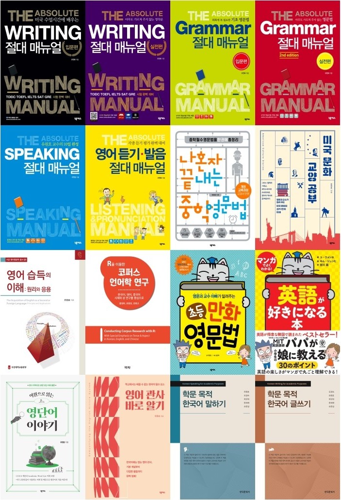 **Yoo, I. W., & Blankenship, B. (2003). Duration of epenthetic [t] in polysyllabic American English words. Journal of the International Phonetic Association, 33(2), 153-164. B O O K S (all in Korean) 유원호, 오경숙, 박진혁, 한새해, 오문경. (2025). 학문 목적 한국어 말하기(Korean speaking for academic purposes). 한국문화사. 오경숙, 유원호, 박진혁, 한새해, 오문경. (2025). 학문 목적 한국어 글쓰기(Korean writing for academic purposes). 한국문화사. Yoo, I. W. (2025). Demystifying the English article system. Nexus. Yoo, I. W. (2024). Etymological stories of English words. Nexus. Yoo, I. W. (2023). American culture stories. Nexus. Yoo, I. W. (2020). English grammar for middle school students. Nexus. Yoo, I. W. (2019). The absolute writing manual 2 (실전편). Nexus. Hong, J., Yoo, I. W., & Kang, B. (2018). Conducting corpus research with R: With special emphasis on tense & aspect in Korean, English, and Chinese. Yeokrak. Yoo, I. W. (2017). The absolute speaking manual. Nexus. Yoo, I. W. (2017). Cartoon English grammar for elementary students. Nexus. Yoo, I. W. (2016). The absolute listening and pronunciation manual. Nexus. Yoo, I. W. (2015). The acquisition of English as a second or foreign language: Principles and applications. Sogang University Press. Yoo, I. W. (2015). The absolute grammar manual 1 (입문편). Nexus. Yoo, I. W. (2014). The absolute grammar manual 2 (실전편). Nexus. Yoo, I. W. (2012). The absolute writing manual 1 (입문편). Nexus.