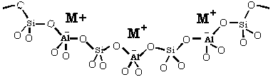 즉, 제올라이트 골격은 실리콘(Si)과 알루미늄(Al)이 각각 4개의 가교산소를 통해 연결되어 있는 삼차원적인 무기고분자(inorganic polymer)이며 이때 알루미늄이 4개의 산소와 결합을 하게 됨에 따라 음전하를 갖는다. 이러한 음전하를 상쇄하기 위하여 다양한 양이온(M+)이 존재한다.